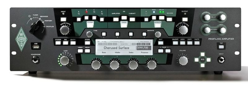 Bundle composto da Kemper Profiler Power Head e apposita pedaliera Kemper Profiler Remote, dotata di dispaly LCD retro illuminato, collegamento (inclusa l’alimentazione) con cavo di tipo Ethernet standard, 14 foot switch per selezionare i rig e le performance, gli effetti, l’accordatore, il tap tempo e le funzioni del looper (comandabile solo attraverso questa pedaliera).