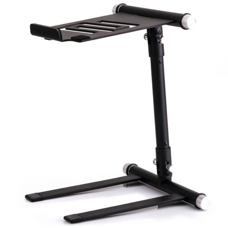 Supporto professionale per posizionare il computer portatile al centro di un setup con 2 giradischi/lettori CD e mixer.