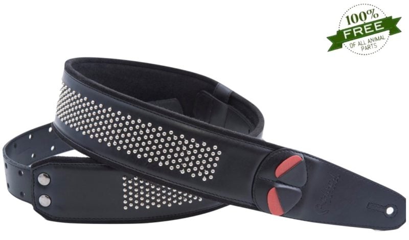 Tracolla realizzata in modo artigianale con materiali ecologici ad alta tecnologia rispettosi dell’ambiente e priva di qualsiasi tessuto animale, caratterizzata da finiture curate in ogni dettaglio, lavorazione unica caratterizzatada piccole borchie metalliche applicate sulla superficie, imbottitura in lattice ad alta densità(5 mm), sistema di regolazione RAS, porta plettri incorporato. Colore marrone,, larghezza 6 cm, lunghezza regolabile da 95 cm a 143 cm, ultra leggera, impermeabile. Indicata per chitarra e basso.