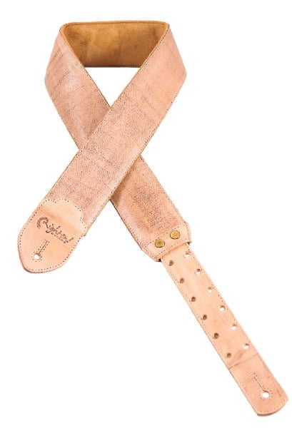 Tracolla in pelle bovina di alta qualità e imbottitura in lattice rivestito con microfbra, sistema di regolazione RAS, porta plettri incorporato. Colore beige, larghezza 6 cm, lunghezza regolabile da 95 cm a 150 cm. Indicata per chitarra e basso.